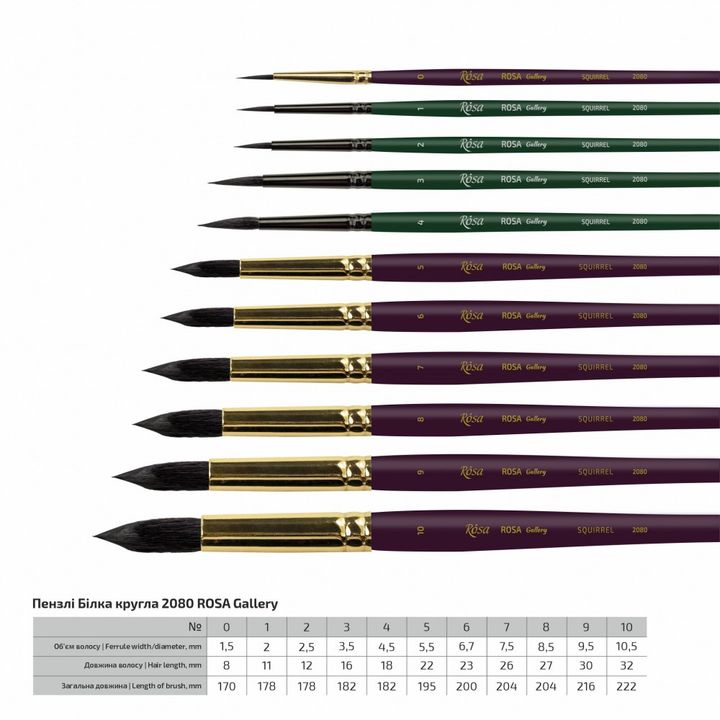 Okrogel čopič iz veverice ROSA Gallery 2080 | različne velikosti