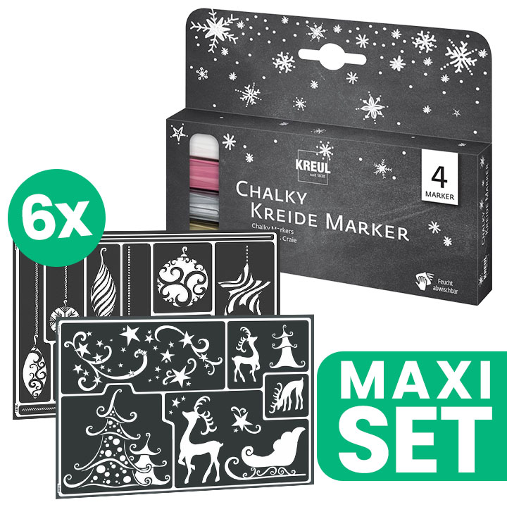 Introduction » Hobby pribor » Zbirka božičnih šablon 6 kosov + komplet krednih markerjev za steklo