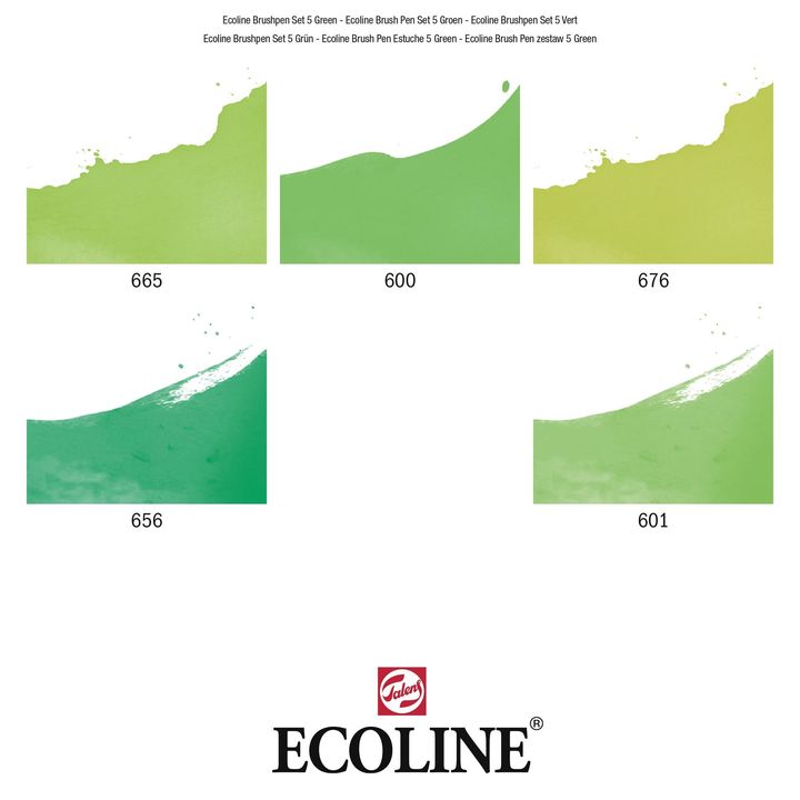 Akvarelna pisala Ecoline Brush Pen Green | Komplet 5 kosov