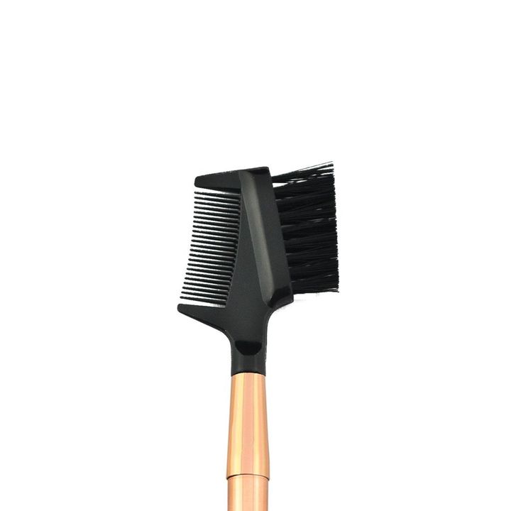 Kozmetični glavnik s čopičkom Chique RoseGold je idealen za prilagajanje vaših obrvi in popolnoma uokvirja vaš obraz. Naj vas očara lepota čopičev za ličenje svetovno znane ameriške znamke Royal & Langnickel. Serija Chique RoseGold vsebuje celo vrsto kozmetičnih čopičev, posamično zapakiranih. Sintetična vlakna profesionalne kakovosti so veganska in niso testirana na živalih. Elegantni aluminijasti ročaji rožnatega zlata ponujajo največjo trpežnost in so nepremočljivi.