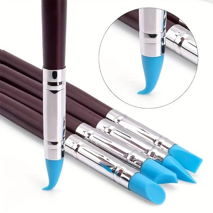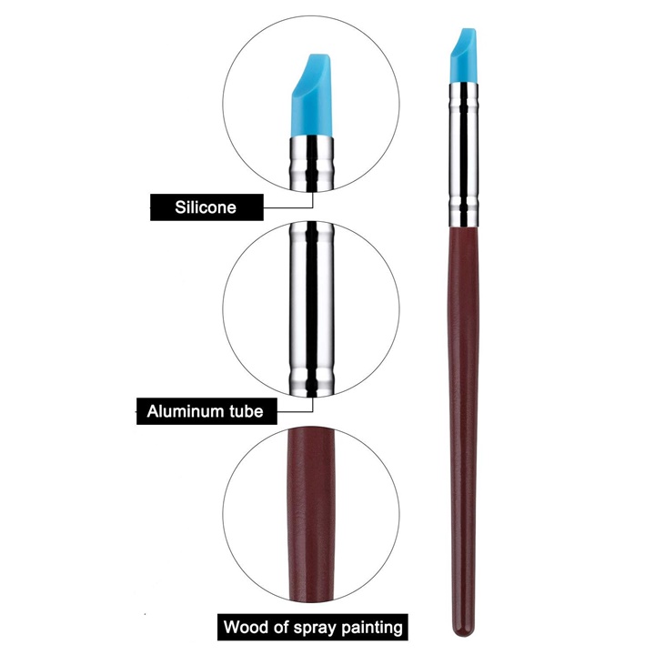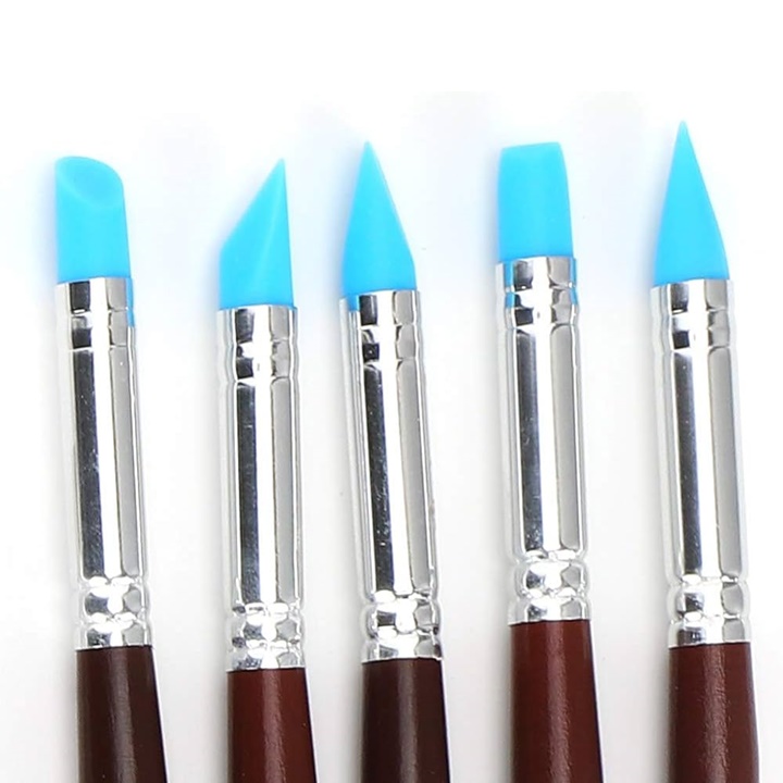 Odkrijte čare teh vsestranskih silikonskih čopičev, ki predstavljajo povsem nov pristop k delu z glino, plastelinom, epoksidnim kitom in barvami za telo. Ta orodja za kiparjenje so zasnovana za umetnike in obrtnike, ki radi delajo s teksturami in se posvečajo kiparjenju. Gumijasta strgala se lahko uporabljajo za enkaustiko, ki je posebna tehnika slikanja z nanašanjem vročega voska, primerna pa so tudi za delo s toplotno pištolo. Zaradi edinstvenih silikonskih konic, ki ne vpijajo barve, lahko z njimi delate izjemno natančno. Odporne so na topila in imajo dolgo življenjsko dobo, zato so priročno orodje za vsakega umetnika. Čiščenje čopičev je izjemno enostavno - konico samo obrišite z vlažno krpo in že so pripravljeni za naslednjo uporabo. Odlični so tudi za ustvarjanje snežnih poslikav z razpršilom na oknih.